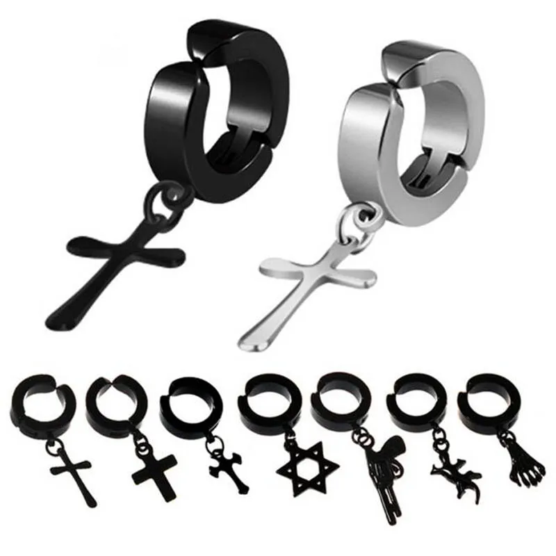 Name: Los hombres de armas pendientes de Clip pendientes largos aretes pendientes moda Hiphop estilo Rock hipoalergénico en forma de cruz de acero de titanio Clip de oreja aretes Accesorios