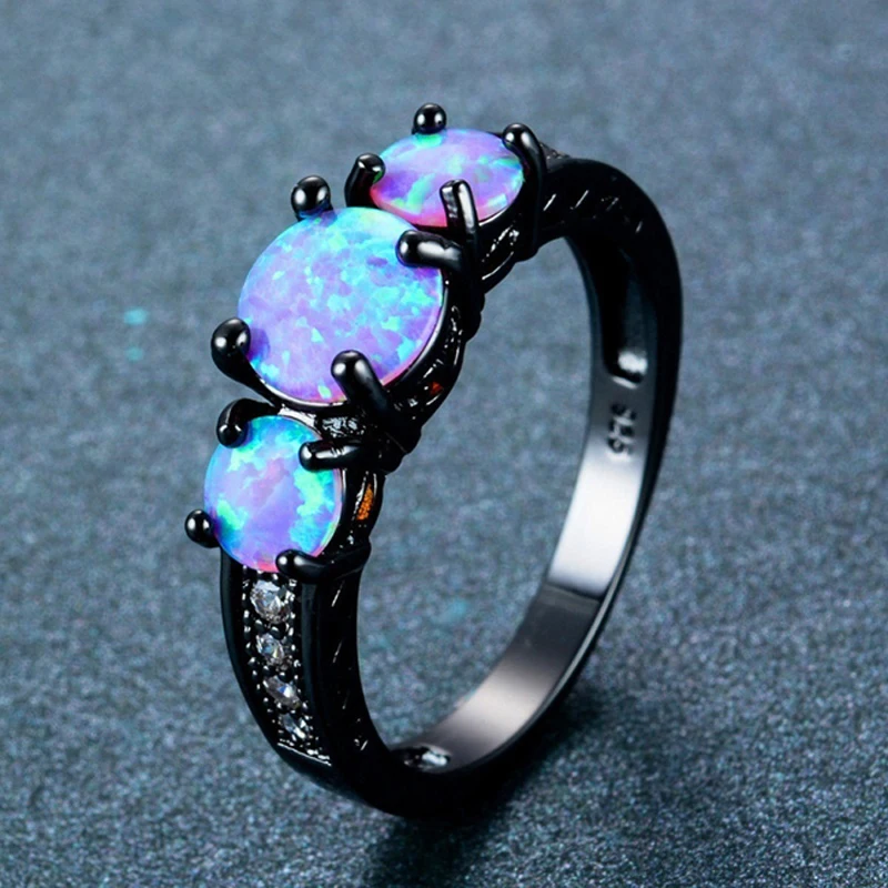 Name: Anillo de boda de ópalo de Fuego Azul redondo para Mujer, sortija de moda, Oro Negro, joyería Vintage