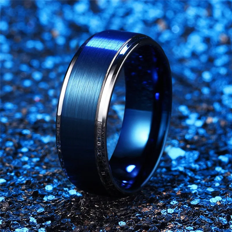 Name: I & FDLK-Anillo de boda de tungsteno para hombre, 8Mm, Color azul plata cepillada, sortija de boda periférica, regalo de pareja