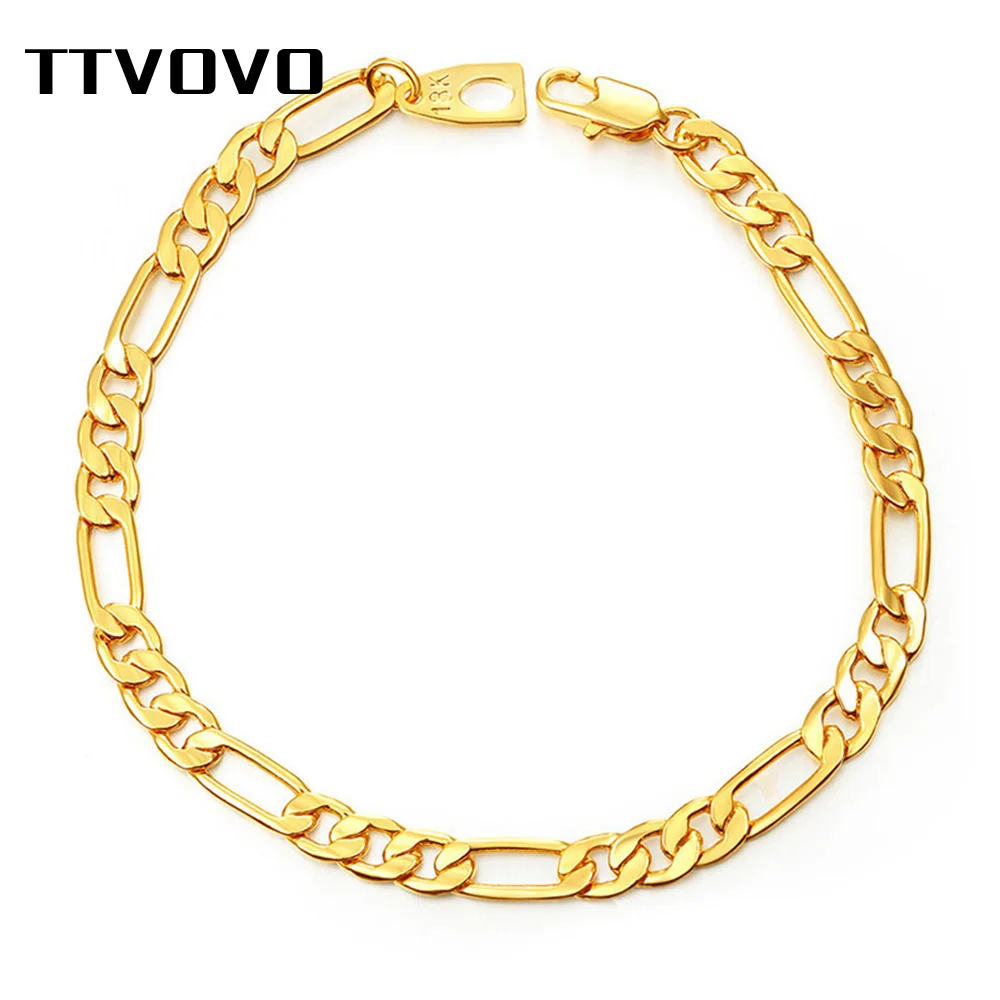 Name: TTVOVO-pulsera de cadena de eslabones para hombre y mujer, Figaro lleno de oro, 5MM, pulsera ancha Cadena, joyería masculina de Hip Hop