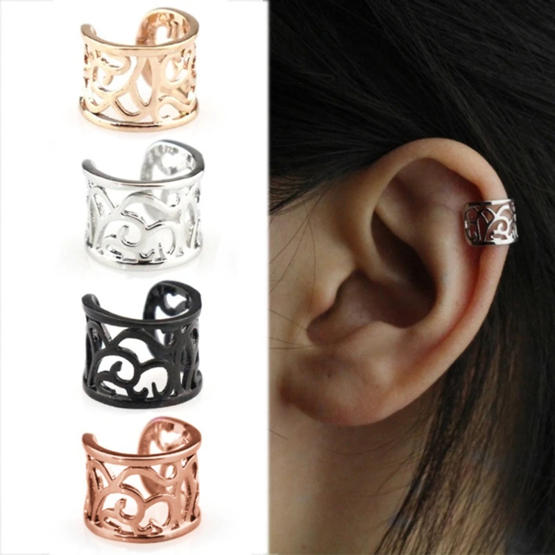 Name: Pendientes Punk de medio círculo para mujer, joyería con Clip urdimbre, Clips de hueso del oído de tono dorado Chic, 2 uds.