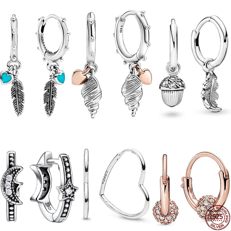 Name: NOVEDAD DE VERANO 2020, pendientes de plata de ley 925 con diseño de corazón y concha, pendientes aptos para pulseras Pandora originales, joyería DIY para mujer