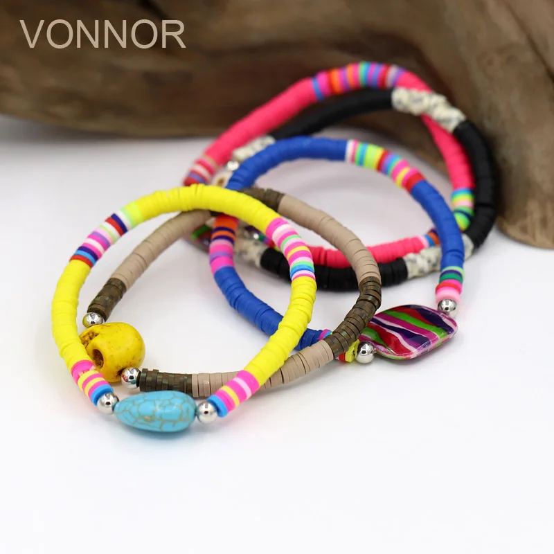 Name: VONNOR-Pulseras hechas a mano de arcilla polimérica para mujer, joyería Bohemia, pulsera de hilo de cristal con piedras de concha, accesorios para mujer